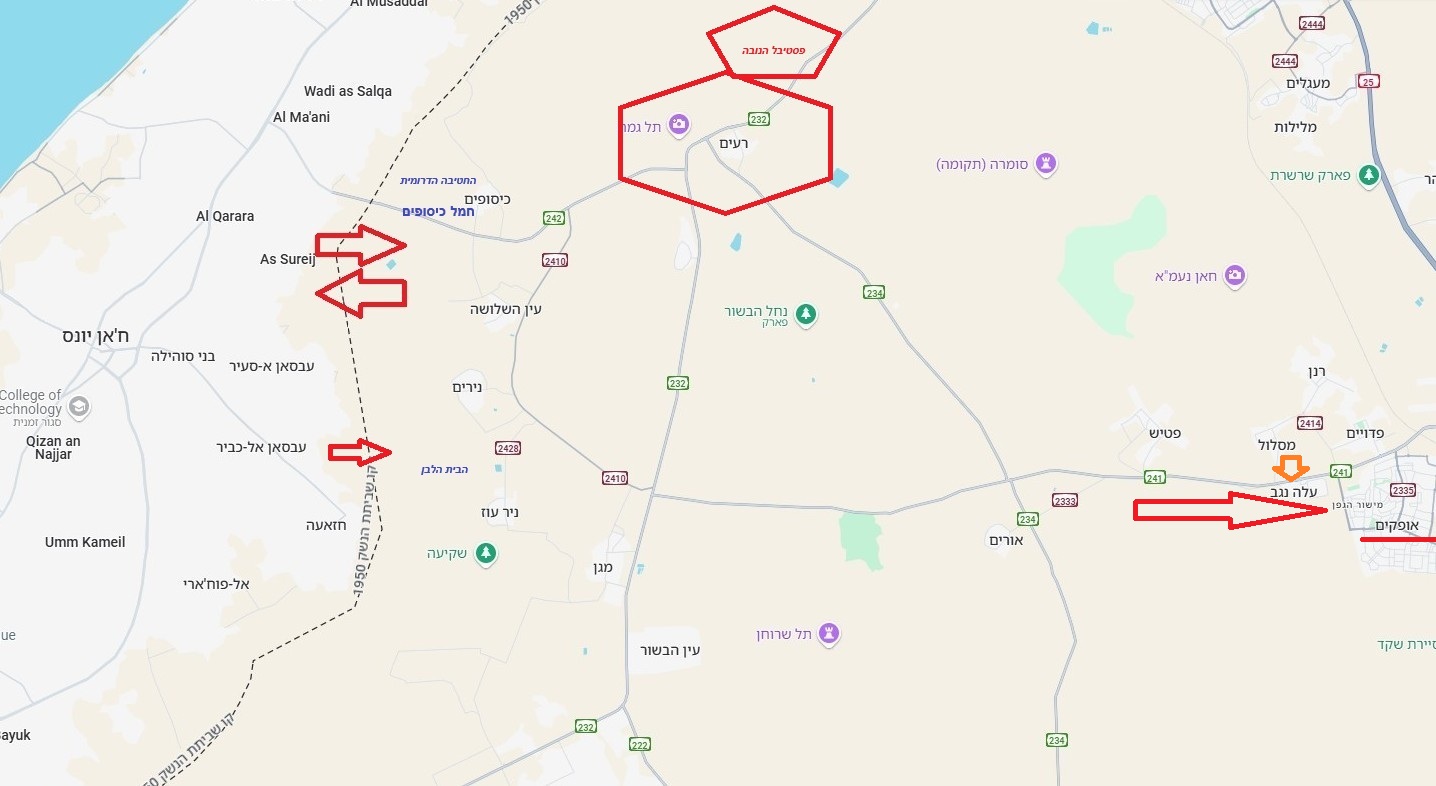 תגובת דובר צה"ל: הזמן בתחקיר שלנו הוא הנכון. כשביקשתי את התשובה הזו בכתב, קיבלתי סירוב - כאן (די ברור למה, משקרים, כהרגלם). התשובה הזו של דובר צה"ל סותרת גם מה שכתוב בוויקיפדיה (כאן) שהמחבלים הגיעו לאופקים ב-06:45, וסותרת את עדות הקב"ט (באותה עת) של "עלה נגב" (כפר נוער הנמצא כקילומטר לפני הכניסה לאופקים, ראה בתמונה), כמפורט כאן, שהמחבלים עברו מול השער של "עלה נגב" ב-06:28, כלומר הגיעו לכניסה לאופקים ב-06:29. לכן, בהחלט סביר שהם נעו רגלית בתוך סמטה בשכונת גפן באופקים ב-06:44, כפי שהם נראים בסרטון הזה. כלומר: המחבלים חדרו לשטחנו הרבה לפני 06:29, כפי שכתוב בכל תחקירי צה"ל.