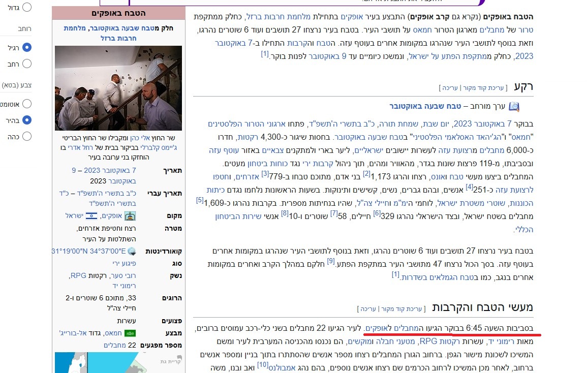 16.2.25: פורסם בכיפה: 64 נרצחים ו-20 חטופים: צה"ל יפרסם את ממצאי תחקיר כפר עזה לחברי הקיבוץ: 3 נהרגו בשוגג, פינויים מהקיבוץ יצאו בזמן שהיו מחבלים על הכבישים, ואיסוף הגופות התנהל ללא איסוף ממצאים מסודר: נציגי צה"ל יגיעו לחדר האוכל של כפר עזה ויספרו לחברי הקיבוץ, משפחות הנרצחים והחטופים וכן משפחות הנופלים את סיפור הטבח כפי שידוע עד כה. הערת מערכת: אין לתת אמון בתחקיר מהסוג הזה בכלל - כאן. את התחקיר הספציפי הזה ערך מח"ט 55 אל"מ עודד זימן, שלמעשה חקר ובדק את עצמו....