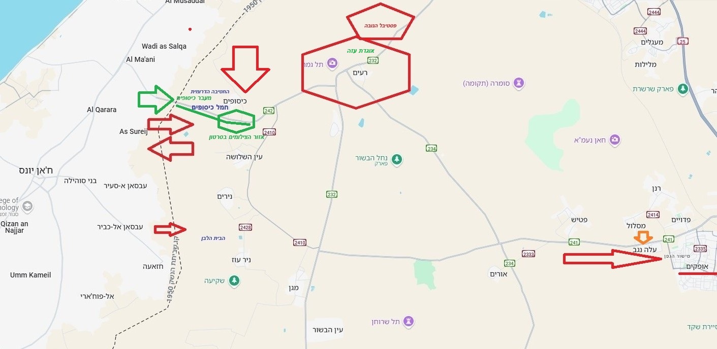 בסרטון הזה, המחבלים מהחמאס (כ-30 לערך) נעים על אופנועים מהמעבר, בדרך לאזור רעים, בבוקרו של יום "השבת השחורה", 7.10.23, בדרך שנכנסו אליה בלי שום קושי, היישר ממעבר כיסופים על כביש 242 [המעבר בכיסופים היה אמור להיות מכוסה בתצפיות של החטיבה הדרומית], רובם בתחפושת של חיילי צה"ל, עם המשימה ברורה של המפקדים שלהם, לנוע לכיוון מתחם רעים, ממזרח למערב.
