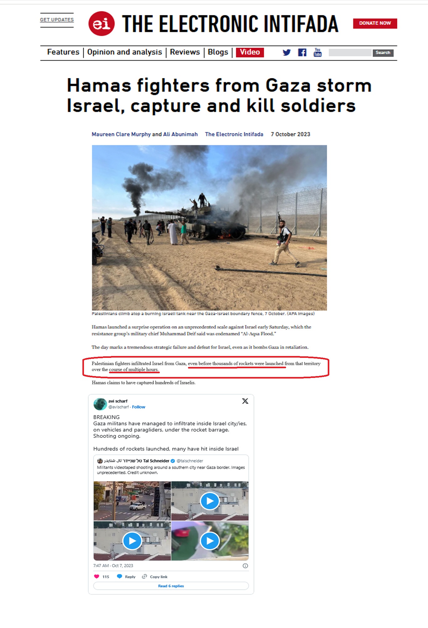 כלומר: המחבלים היו כבר בשטחנו [כאן בסרטון באופקים], הרבה לפני מועד תחילת המלחמה 06:29 (כי אופקים רחוקה כמעט חצי שעה נסיעה מהירה מרצועת עזה).