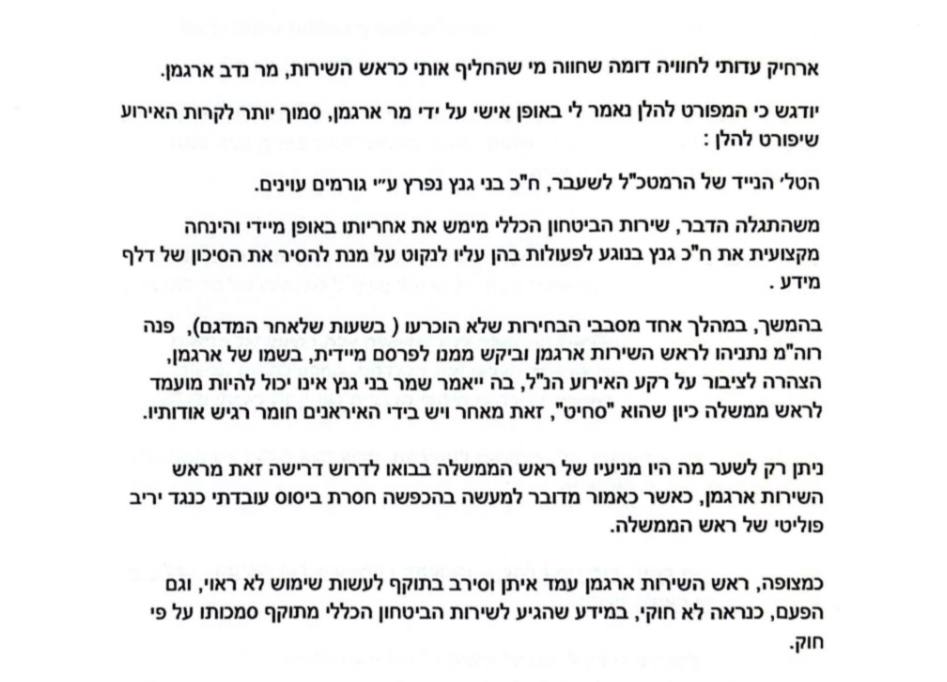 ב. בג"צ מציע - כאן ליועמ"שית: חדלי מכל עיסוק בענייניו של נדב ארגמן [לשעבר ראש השב"כ].