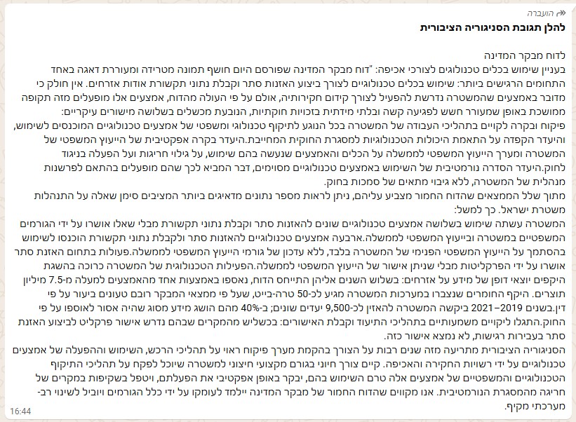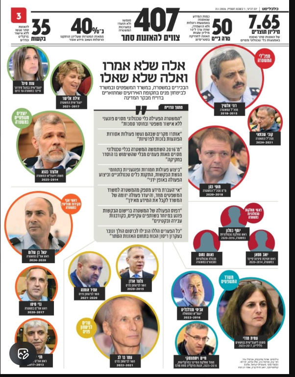 20.1.26: מבקר המדינה פרסם היום כאן, דו"ח מחריד על השימוש ברוגלות ע"י משטרת ישראל.