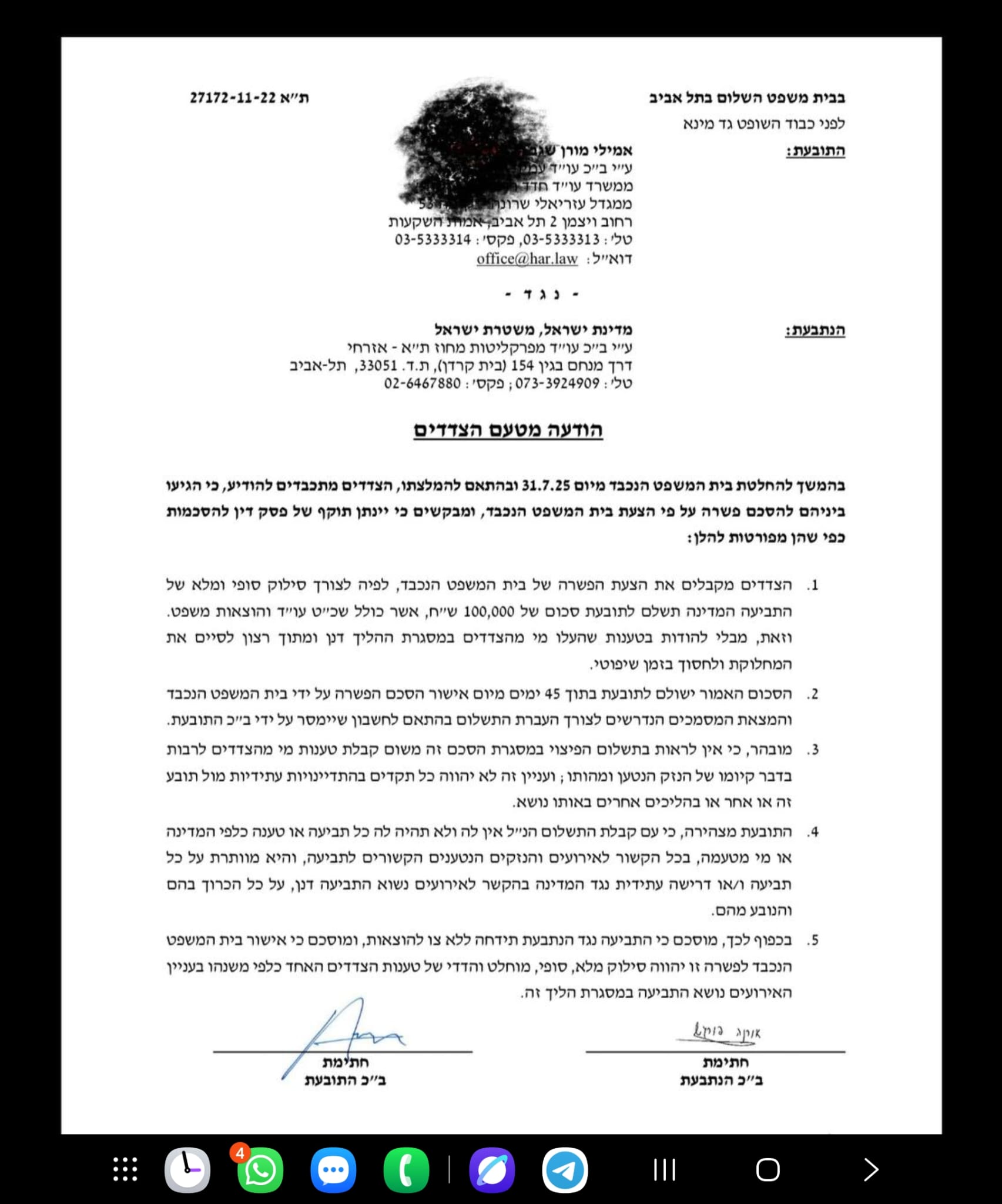 המשך עדכונים ב"תיק אמילי - פגסוס" בבימ"ש שלום ת"א - כאן מתחת לנספח.