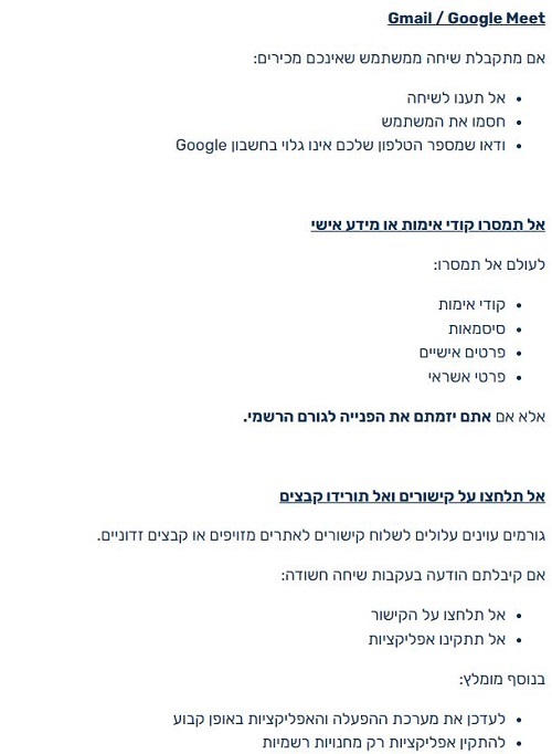 על רקע מבצע “שאגת הארי” יש עלייה בניסיונות גורמים עוינים לבצע פעילות הפחדה והנדסה חברתית כלפי אזרחים באמצעים דיגיטליים. מערך הסייבר הלאומי ממליץ לציבור להפעיל את ההגדרות והצעדים המפורטים במסמך זה כדי לצמצם את הסיכון בשיחות מחו"ל באייפון, באנדרואיד, בווטסאפ, בטלגרם, בגוגל מייל ועוד.