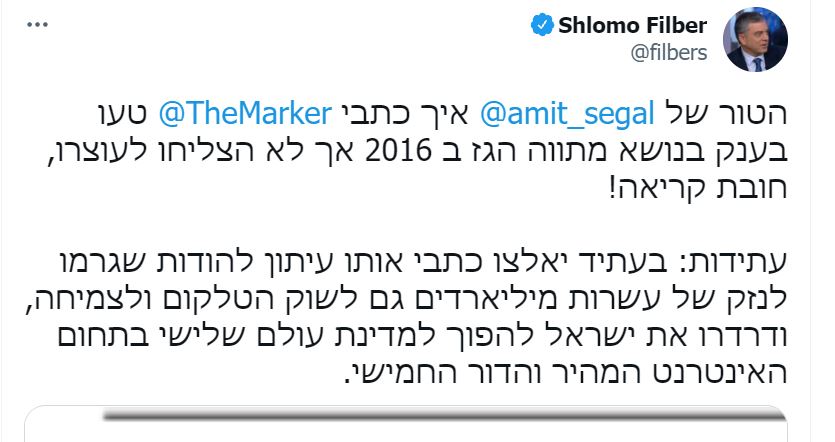 שלמה פילבר מתייחס בציוץ שלו לשימוע החדש של משרד התקשורת (ראה הסעיף הבא).