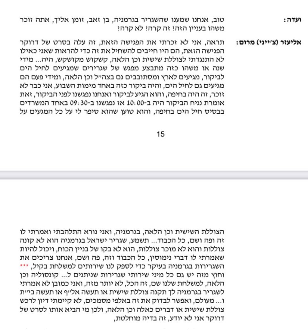15.10.25: באיחור רב ובלתי מוסבר, עלה לפתע פרוטוקול הדיון (עדותו של רפ"ק