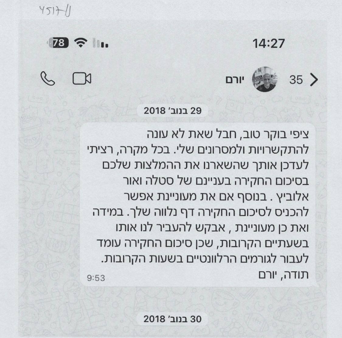 יורם". הודעת הווטסאפ -