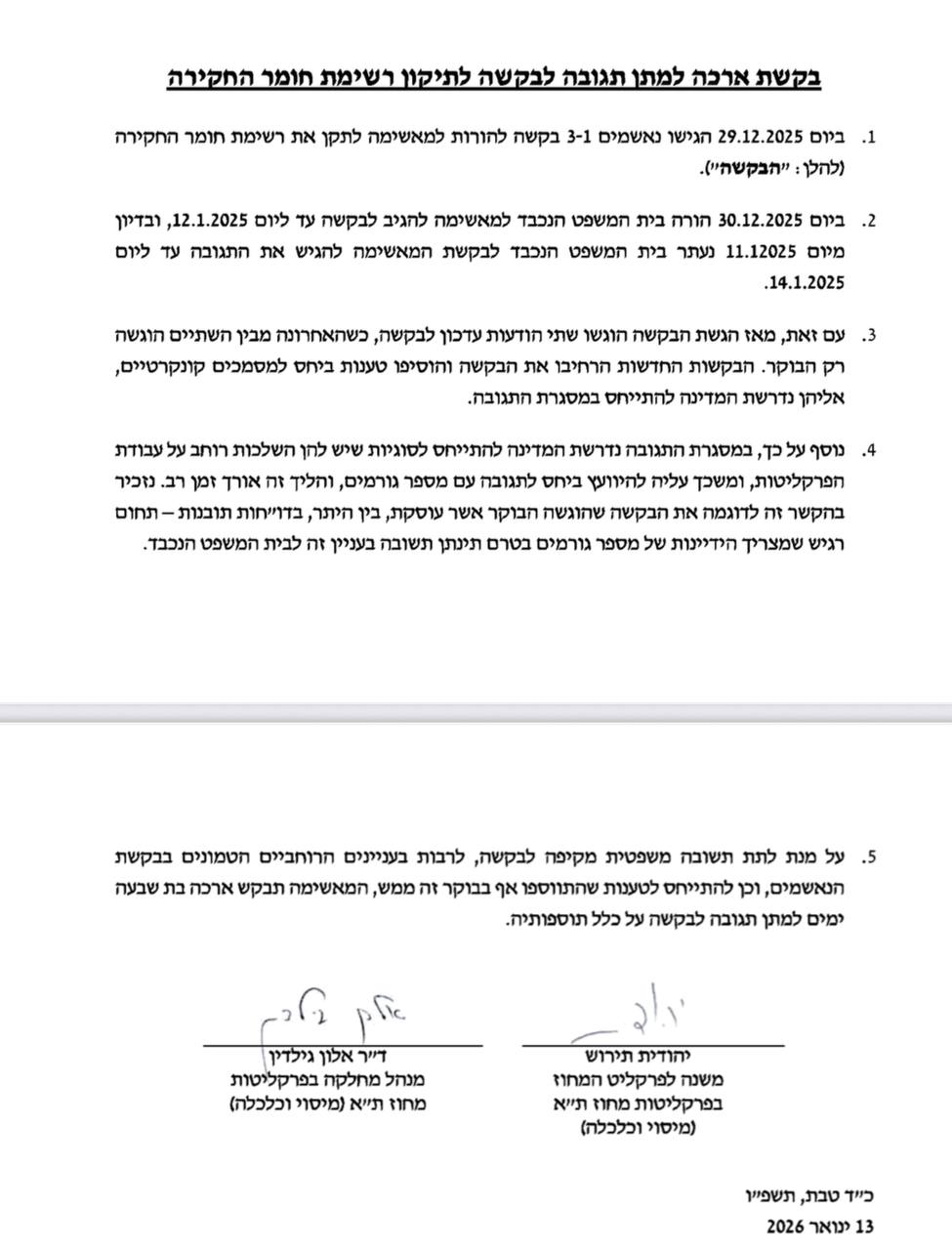 ההמשך בכתבה: עדכונים ממשפט תיקי האלפים מ-19.1.26 ועד 26.1.26 - כאן.