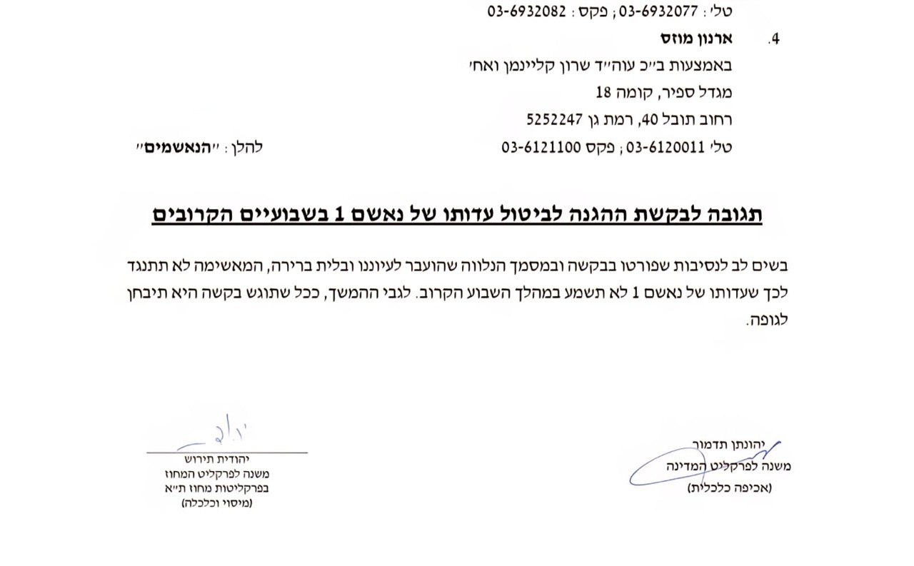 כאן בעדכון 10.4.26, הנימוקים במעטפה הסגורה (הוגדרו כמסווגים) לגבי ביטול עדות