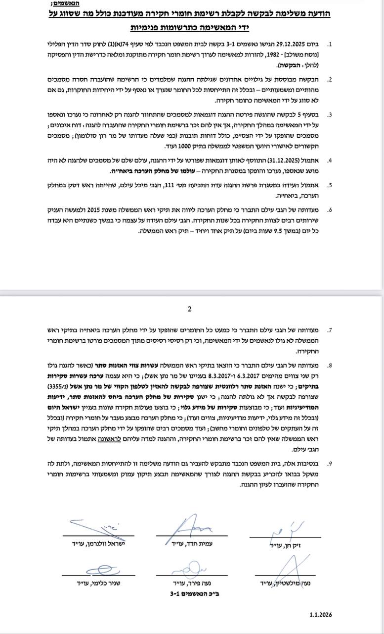 ההמשך בכתבה: עדכונים ממשפט תיקי האלפים מ-11.1.26 ועד 16.1.26 - כאן.