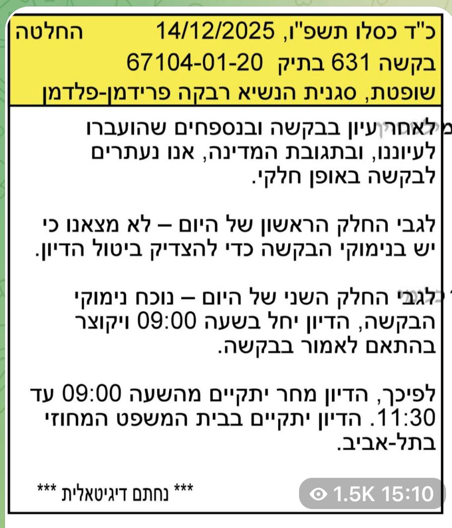 אלי ציפורי פרסם בטוויטר: השופטים מקבלים באופן חלקי את בקשת