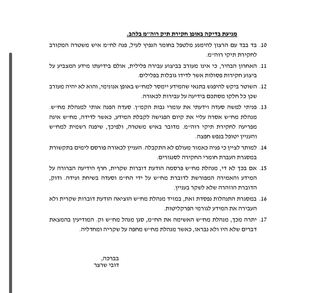 שרצר איך מרחו וטייחו בפרקליטות ובמשטרה תלונה על מעשים לא חוקיים בתיקי