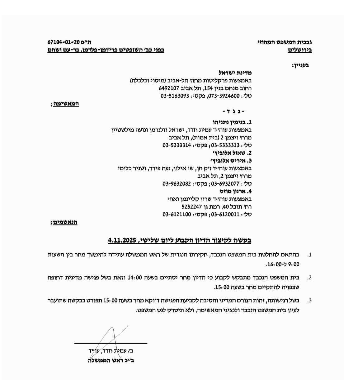 פרידמן-פלדמן: "לגבי בקשת העד - השאלה אם יבקש לא להשיב - אנו נקבל החלטה עם לחייבו להשיב נקודתית". השופט