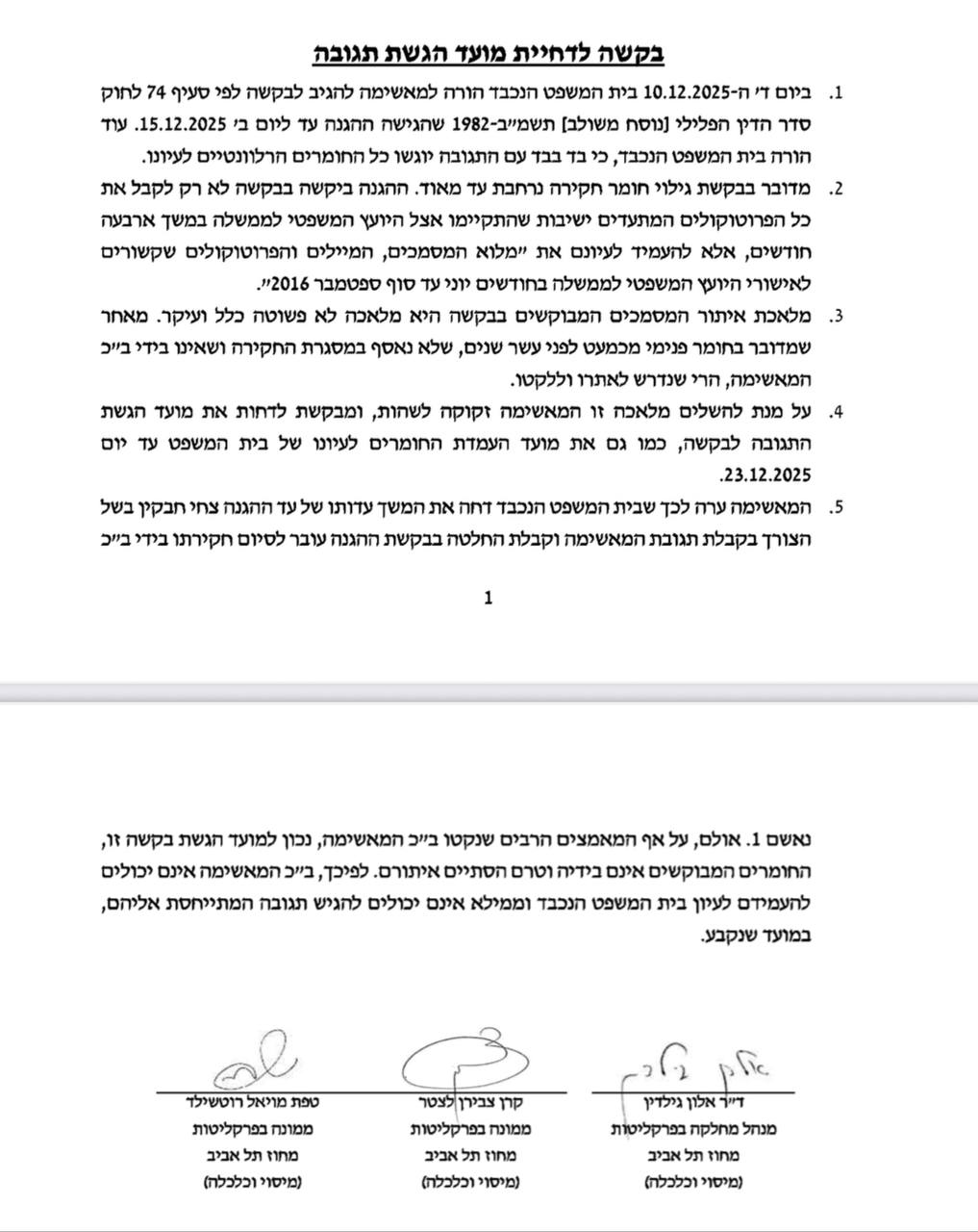 בגיבוי ההתנגדות של הפרקליטות, החליטו בכל זאת לקיים היום את הדיון מ-9 עד 11:30 וסירבו לבטל את הדיון היום.