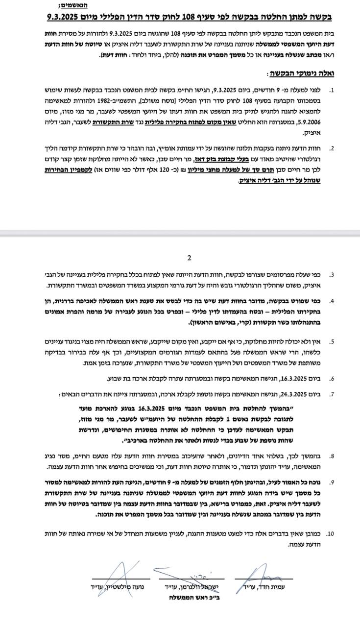 נתניהו דחו כאמור את בקשת עו"ד
