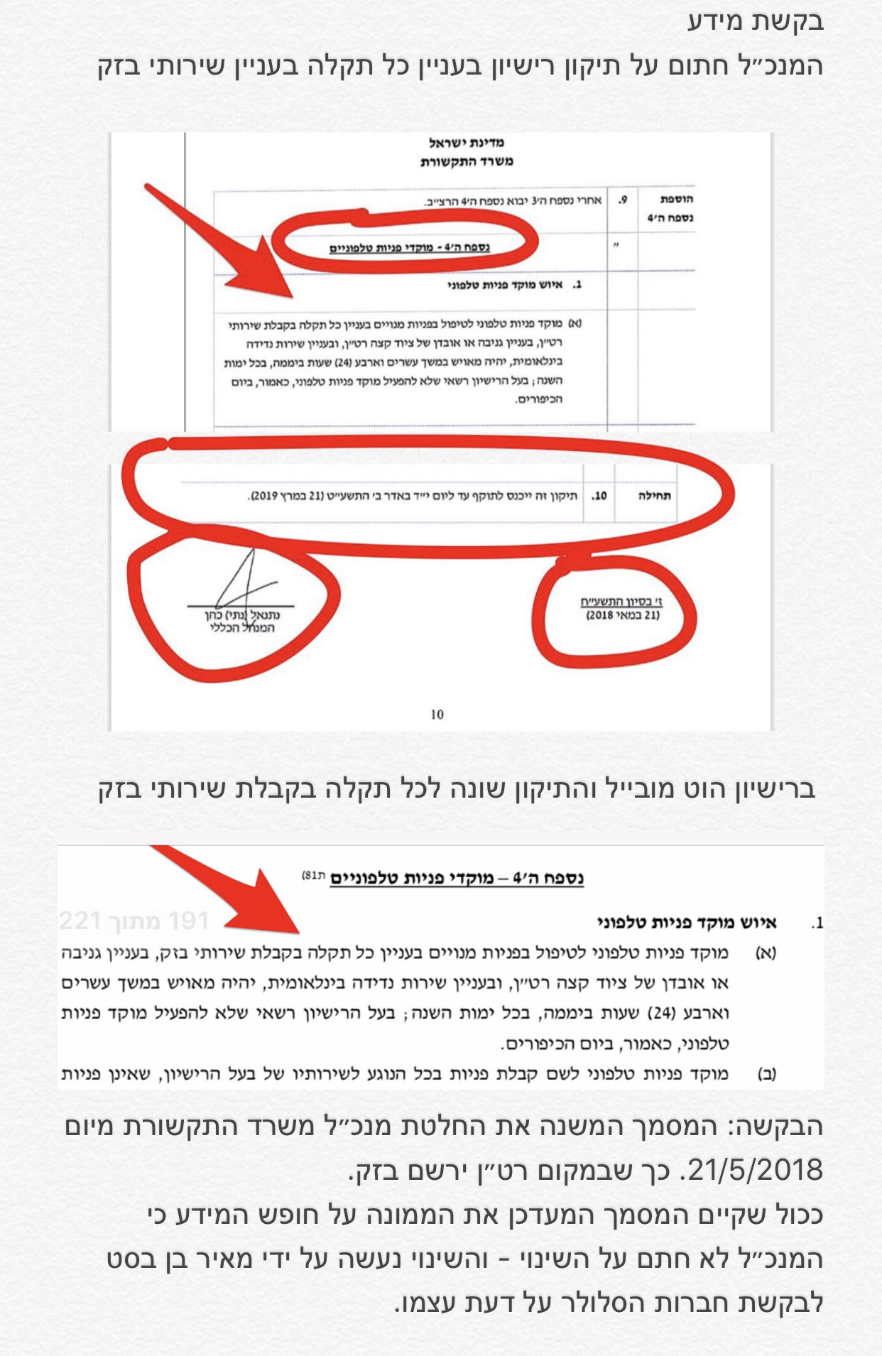 כאן (לפני ואחרי השינוי של החלפת "המילה המשבשת רגולציה" הזו), ומשרד התקשורת לאחר החשיפה שלנו